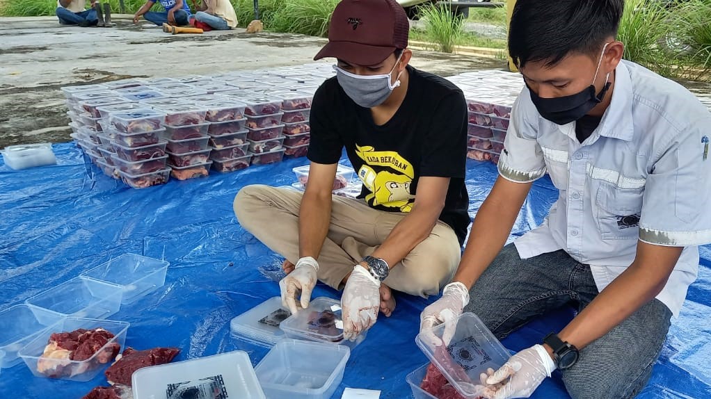 "Untuk tahun ini sebanyak 3 ekor sapi dengan hasil kurang lebih 1.100 paket yang kami packing dalam kemasan langsung diserahkan kepada tiap perwakilandesa yang hadir, di antaranya Desa Mekarsari, Mangkalapi, Gunung Raya, Gunung besar, Teluk Kepayang, Mantewe dan Sungai Dua," kata ketua panitia kurban Imam Bahtiar, Senin (3/8/2020).